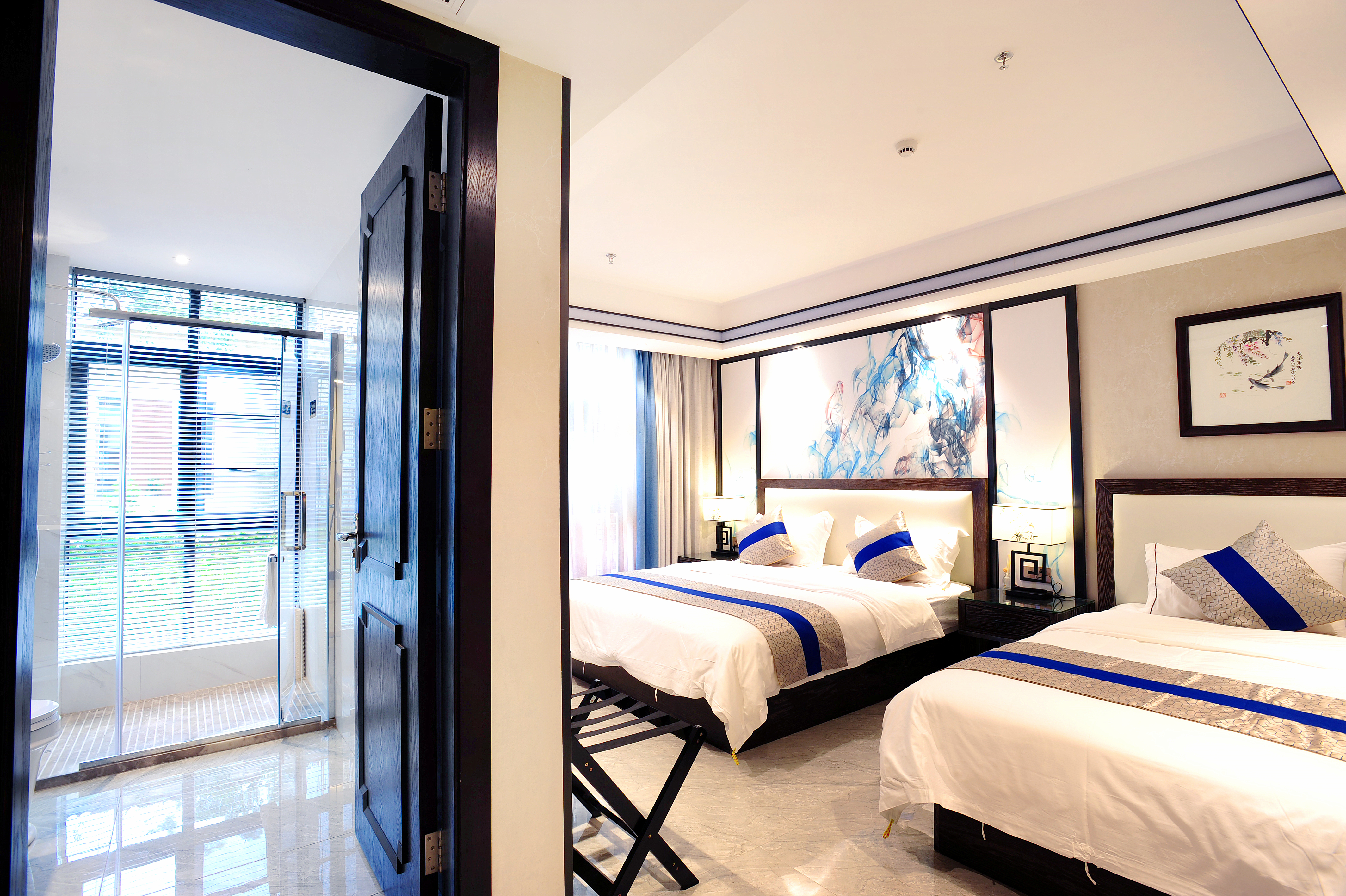 公寓聘请专业设计师精心设计的新中式风格,古朴不失奢华,清新典雅的风格,拥有各种风格的豪华舒适客房,可满足不同住宿需求。