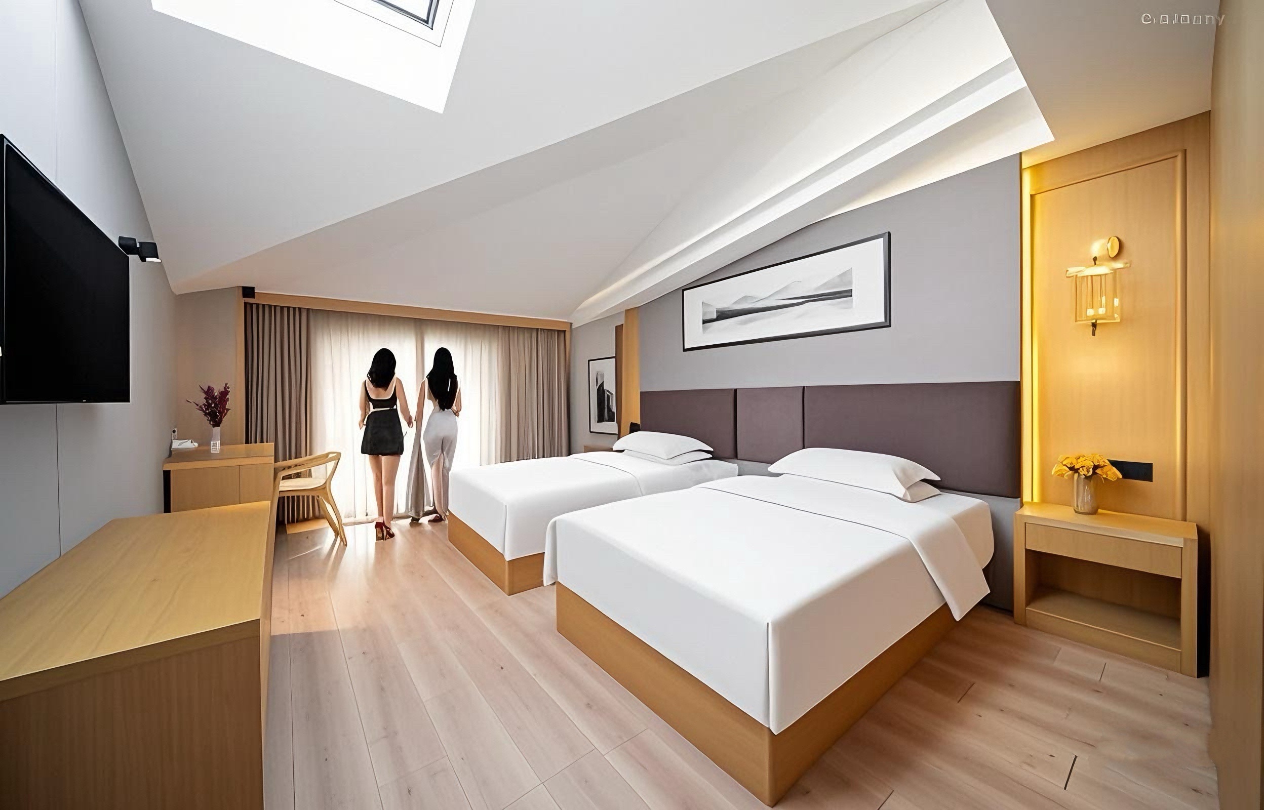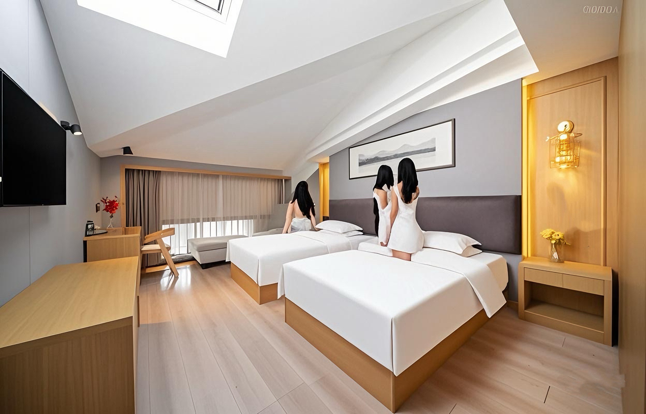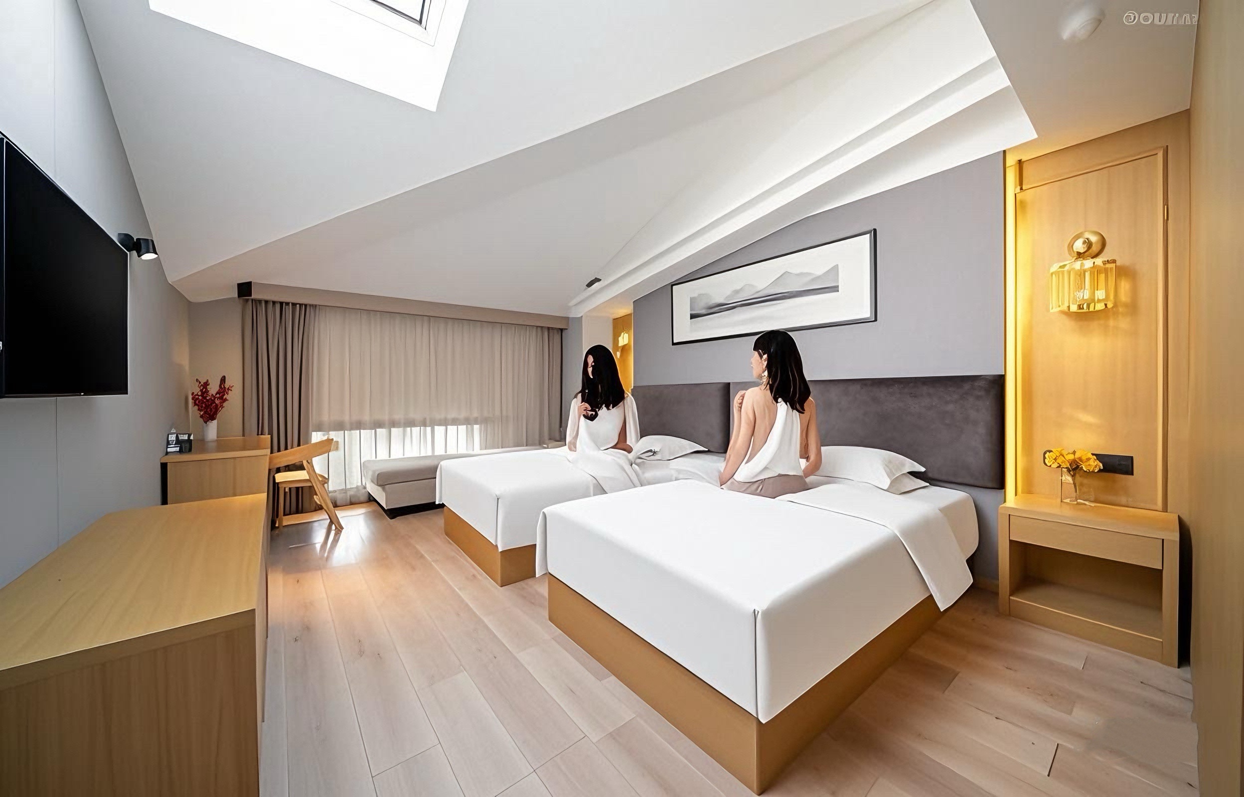 臥龍谷·優選舒享·北歐星空雙床房(星空天窗斜屋頂+辦公桌椅+深睡眠床墊)