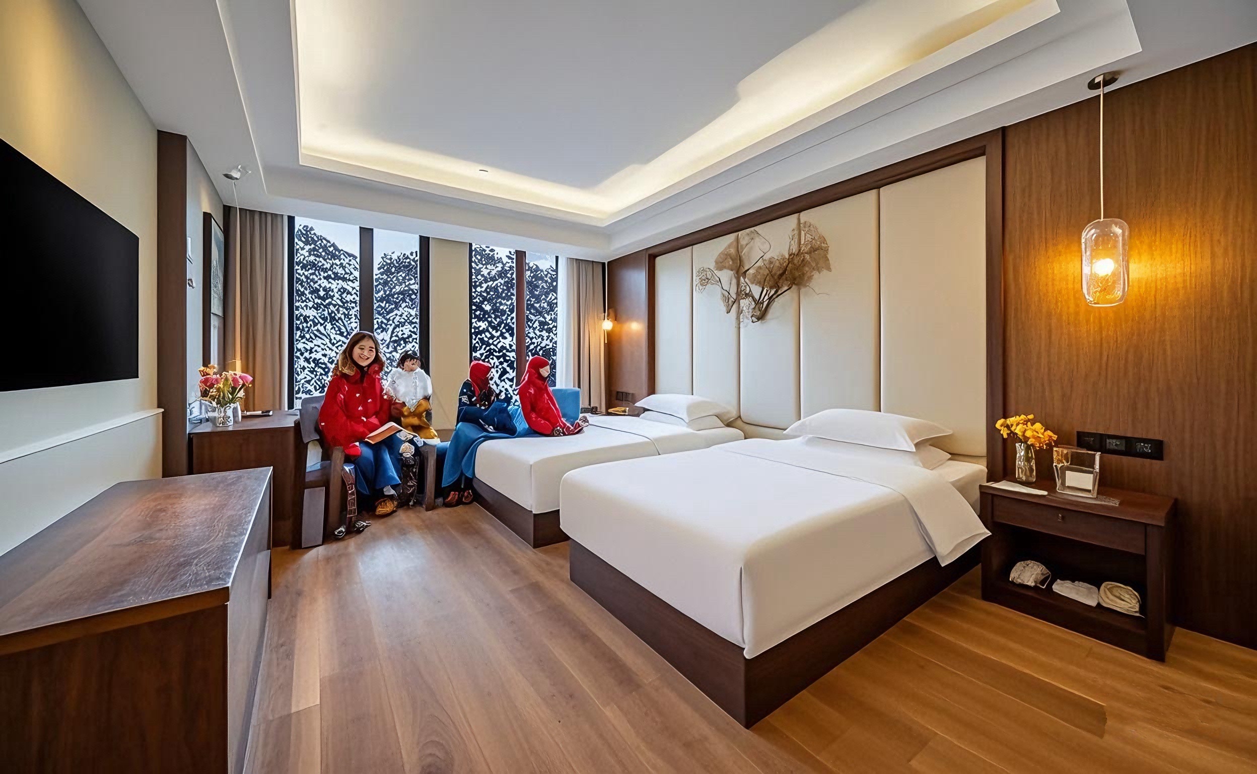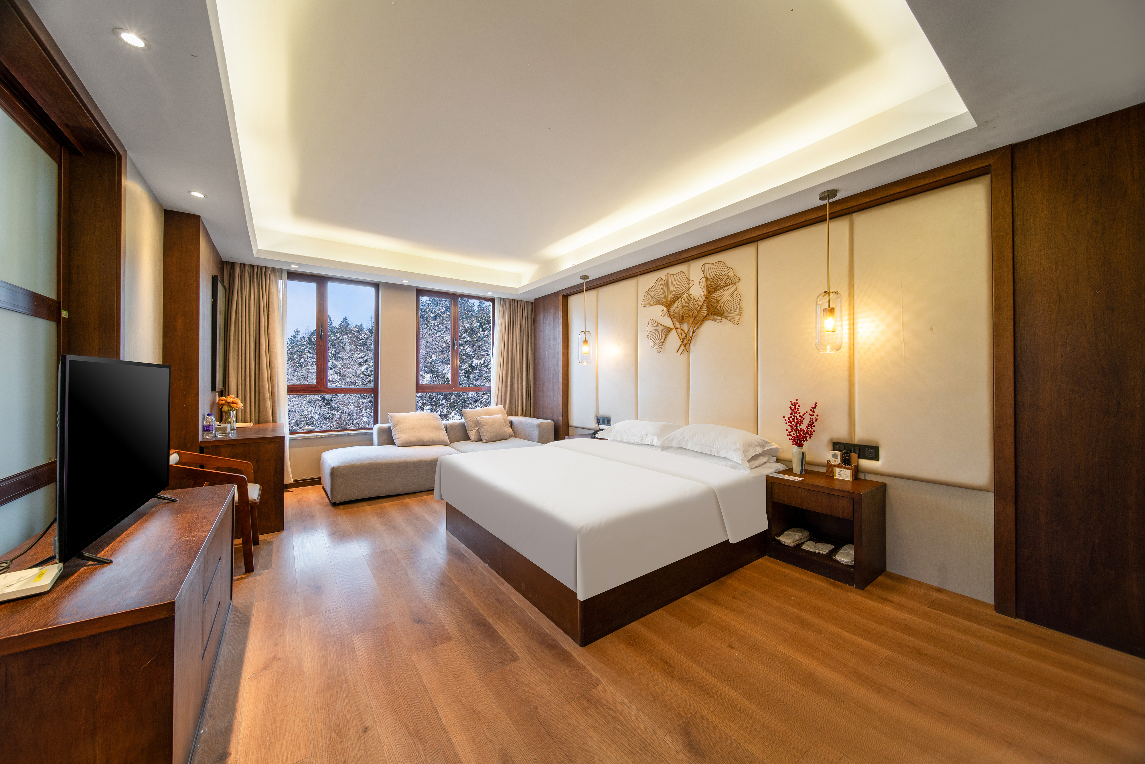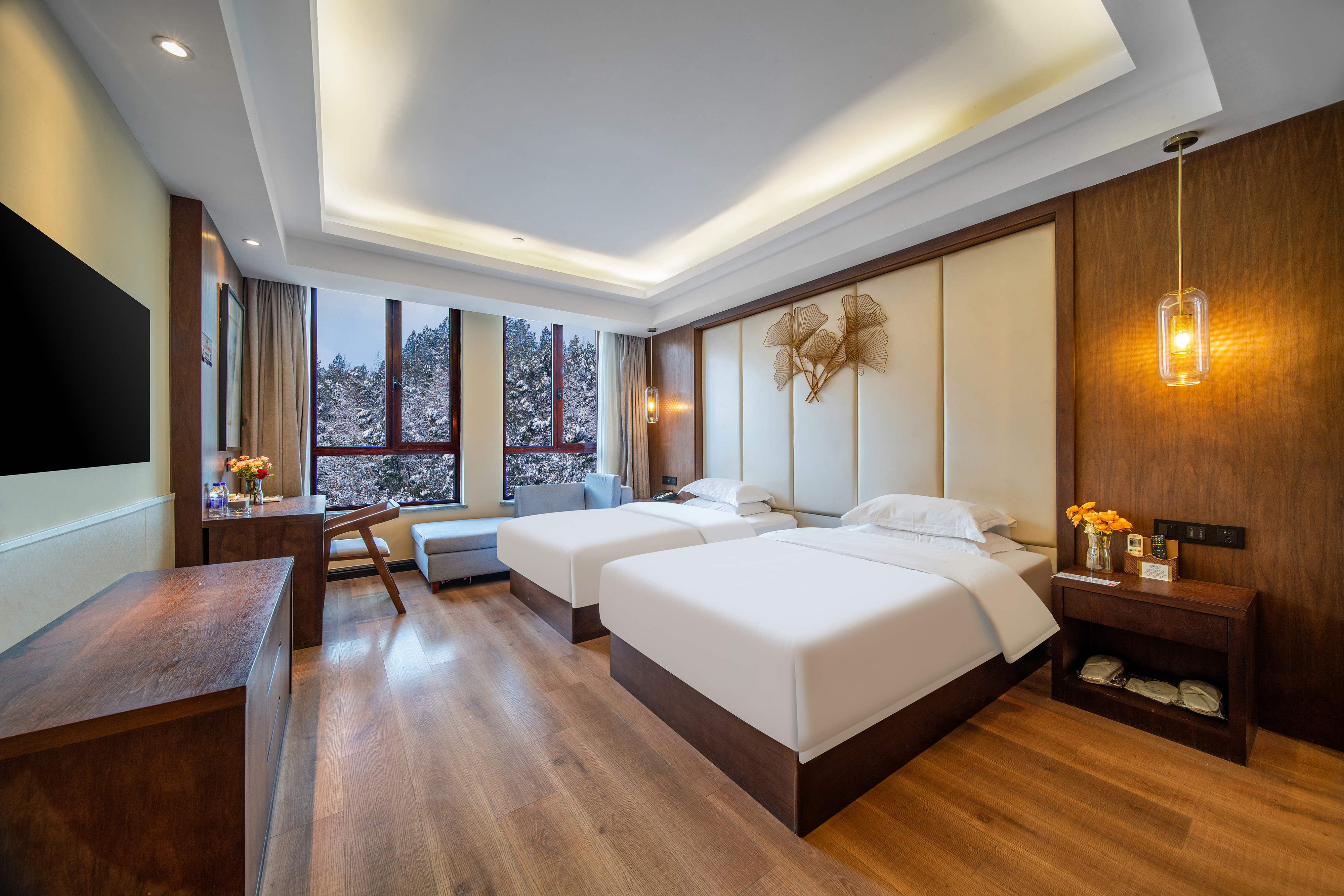 臥龍谷·甄選新中式·湖景行政至尊雙床房(180°湖景景觀+行政辦公+躺平沙發+深睡眠床墊)