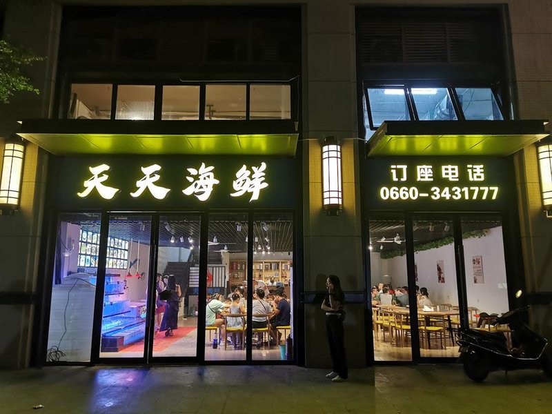 邻近有观海山庄,汕尾特设早茶小吃,西洋农家菜山庄、梧桐湾烧烤场、汕尾一号农场、马宫港海鲜干货等