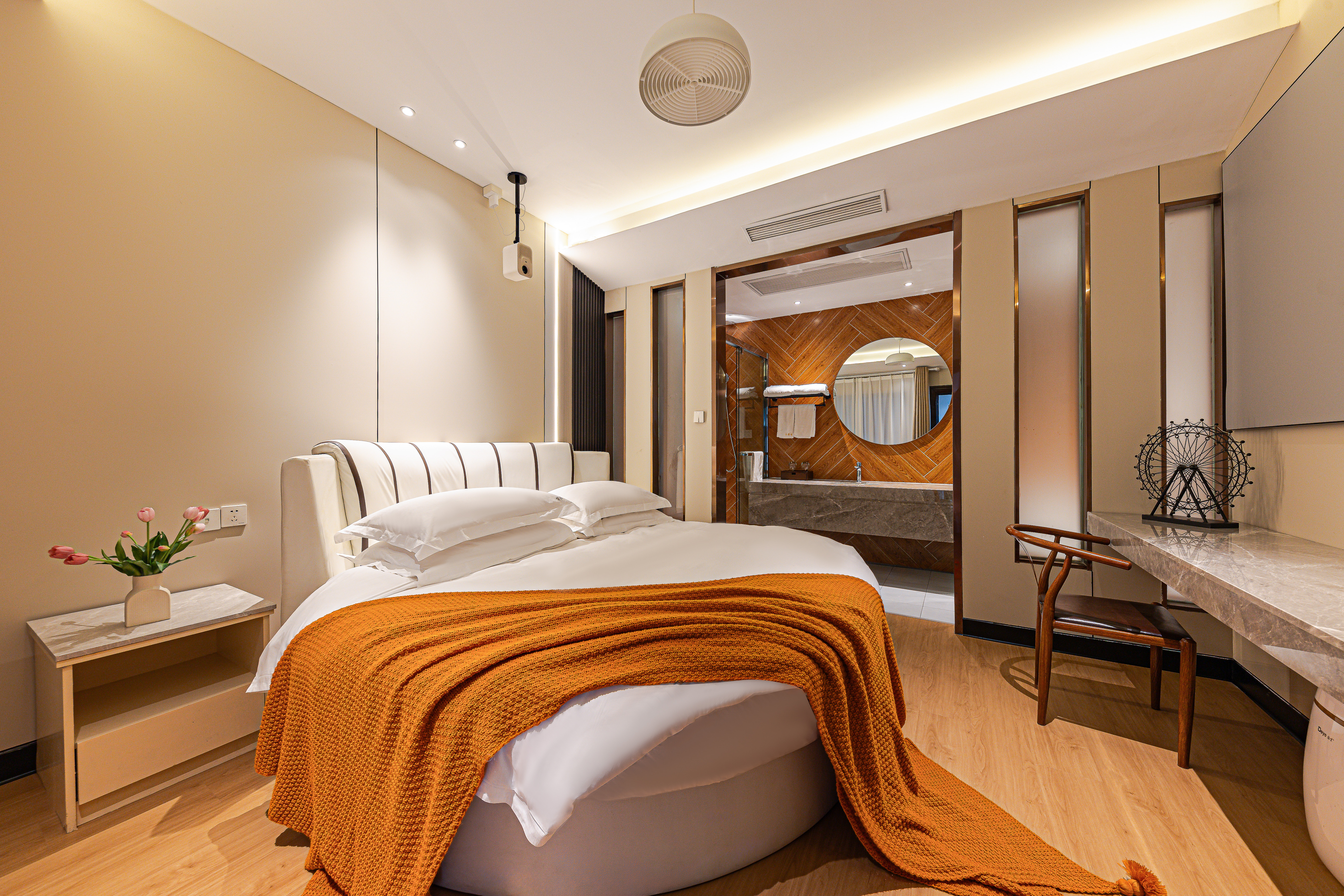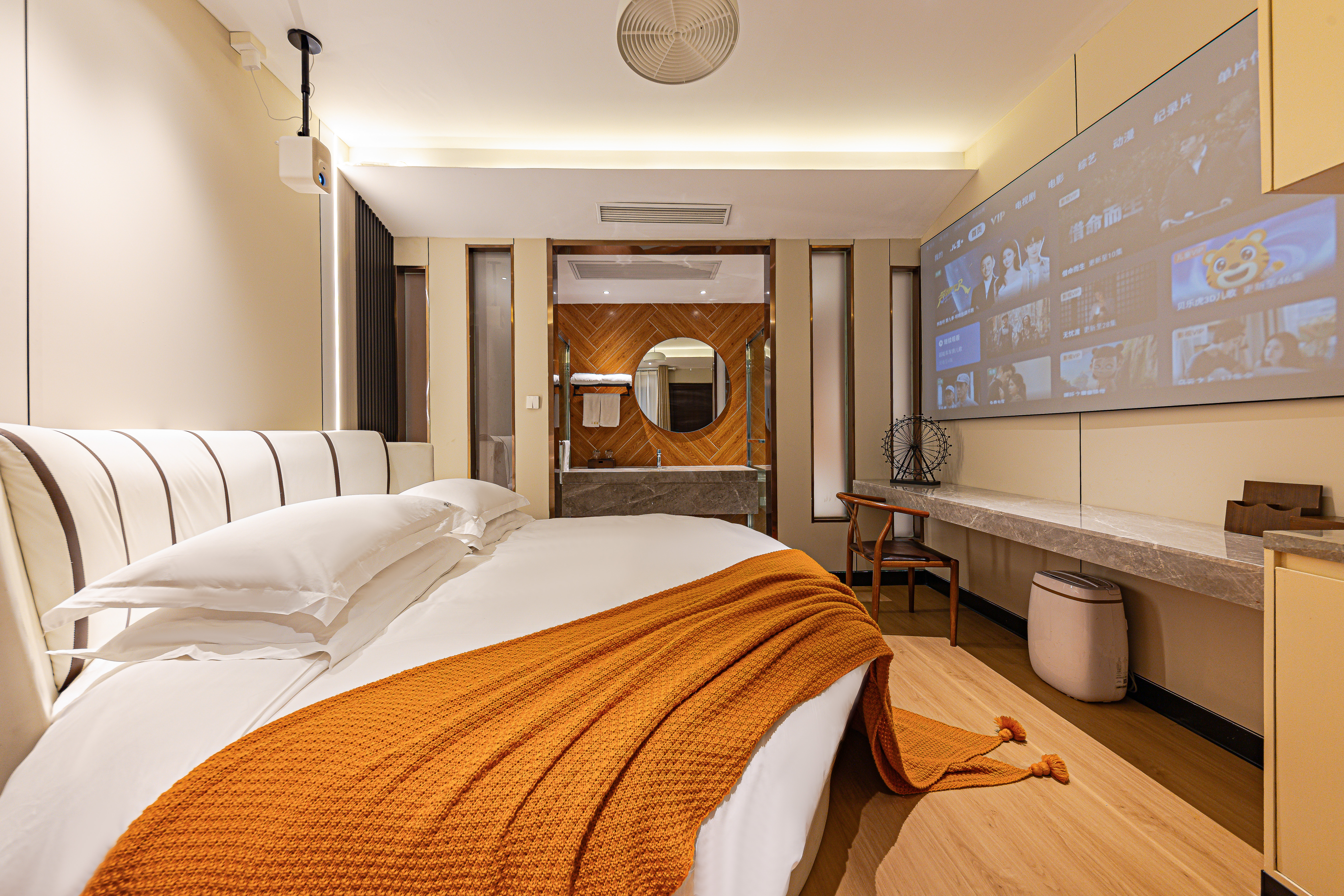 暖居·云枕圆床房(新装亮相|4K超清投影|记忆睡眠枕)