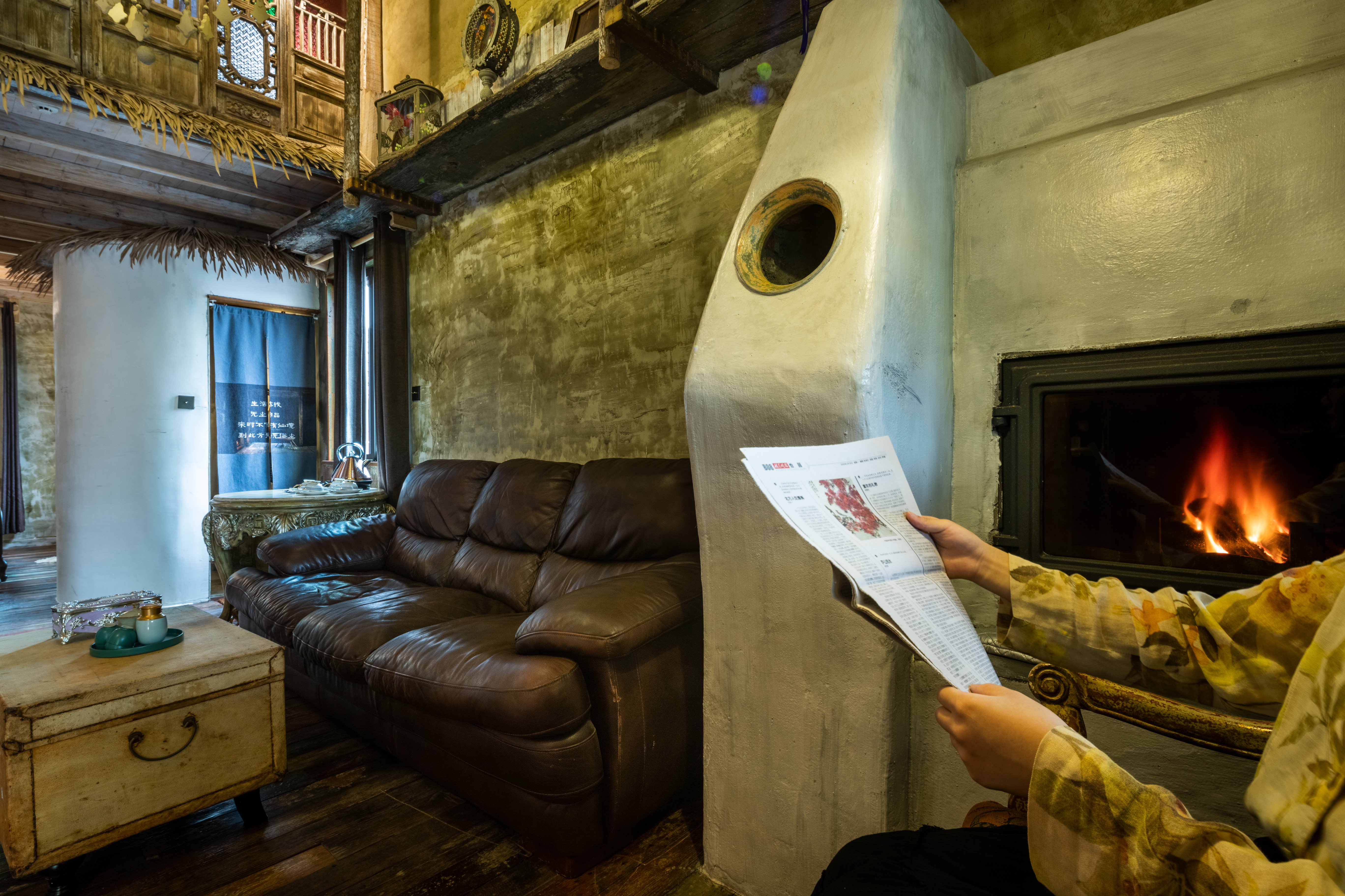 芷畫·地暖露臺復式套房|挑空客廳+真火壁爐+HCK冰箱