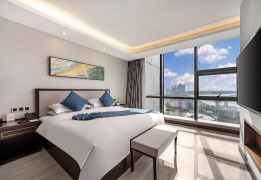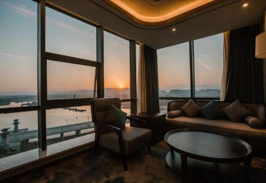金宏国际酒店是陕西省海油集团倾力打造的综合涉外酒店,位于汉中南郑区桥南广场东侧,依托于汉江之畔,距滨江文化公园仅50米,湿地公园200米。环境典美优雅。靠近汉中市中医院龙岗学校,大河坎烟厂附近。酒店周边分布多个知名景区,古汉台,拜将台,南湖风景区,云雾山等。交通便利,离高铁站15分钟车程,拒汉中城固机场40分钟车程。周边娱乐资源丰富,坐拥奥斯卡影院,万邦,吾悦广场等购物消费中心。酒店拥有289间不同类型客房,其中270度全江景套房可以让您纵览汉江江景。酒店内部配套设施齐全,拥有西餐厅,中餐厅,健身房,空中游泳池,空中花园餐厅,江景书吧,大小会议室5个,自有地上,地下200多个停车位,停车方便,安全。