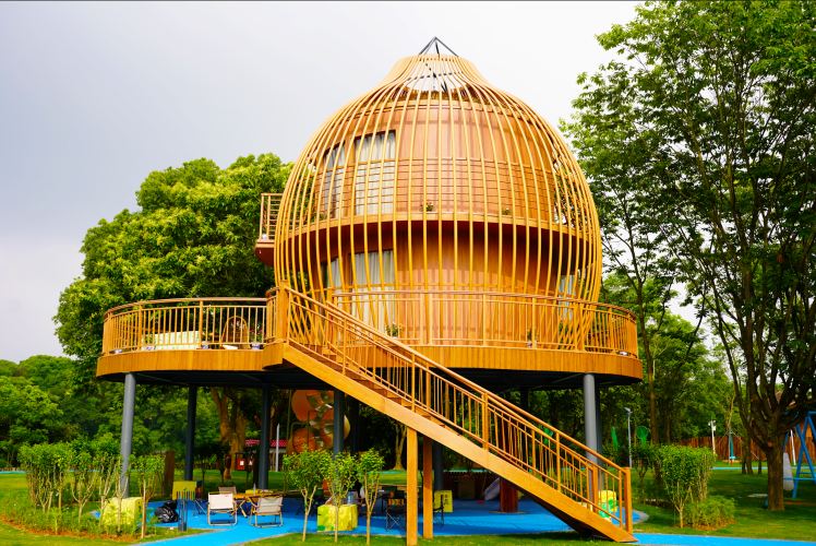 一方院子酒店位於中國東南部的江西省吉安市內,毗鄰國家5A級旅游景區-井岡山, 坐落於風景秀麗的國家4A級旅游景區-蜀口生態島,一方院子酒店內住宿、餐飲功能齊全,既有本地口味和淮揚風味的味蕾碰撞,又有高品質的鄉村住宿舒適體驗。其內包含三棟生態木屋民宿、滿倉民宿、鳳巢空間:三棟生態木屋民宿主體用料是環保原木,采取裝配式新工藝建筑,木屋的左側是石榴園及向日葵,右側是茶園和蜀水。滿倉民宿采用智能化語音管理服務系統,用環保材料建成古代糧倉的外觀,形成復古村落,滿足人們對田園生活的向往。鳳巢空間主題民宿,依托千年古樟和景觀茶園,提取烏雞與蜀口茶元素,設計成獨特的景觀效果,寓意別致的同時與千年古樟和茶園巧妙的融為一體。或臨水或倚樹共建有6個民宿小院、1間共享餐廳、移動式房車1輛和配套小童活動區。內部民宿玲瓏樹屋是以模擬自然為設計理念,整體采用裝配式鋼木結構,配有恒溫泳池,兩房一廳一衞滿足游客住宿休閑娛樂等基本需求,保證舒適的同時營造出雅致的旅居氛圍。一方院子的取名,追求的是東晉詩人陶淵明及當下人們對田園生活的向往,“回歸一方院子,許你一世悠然”也是這里環境的真實寫照。