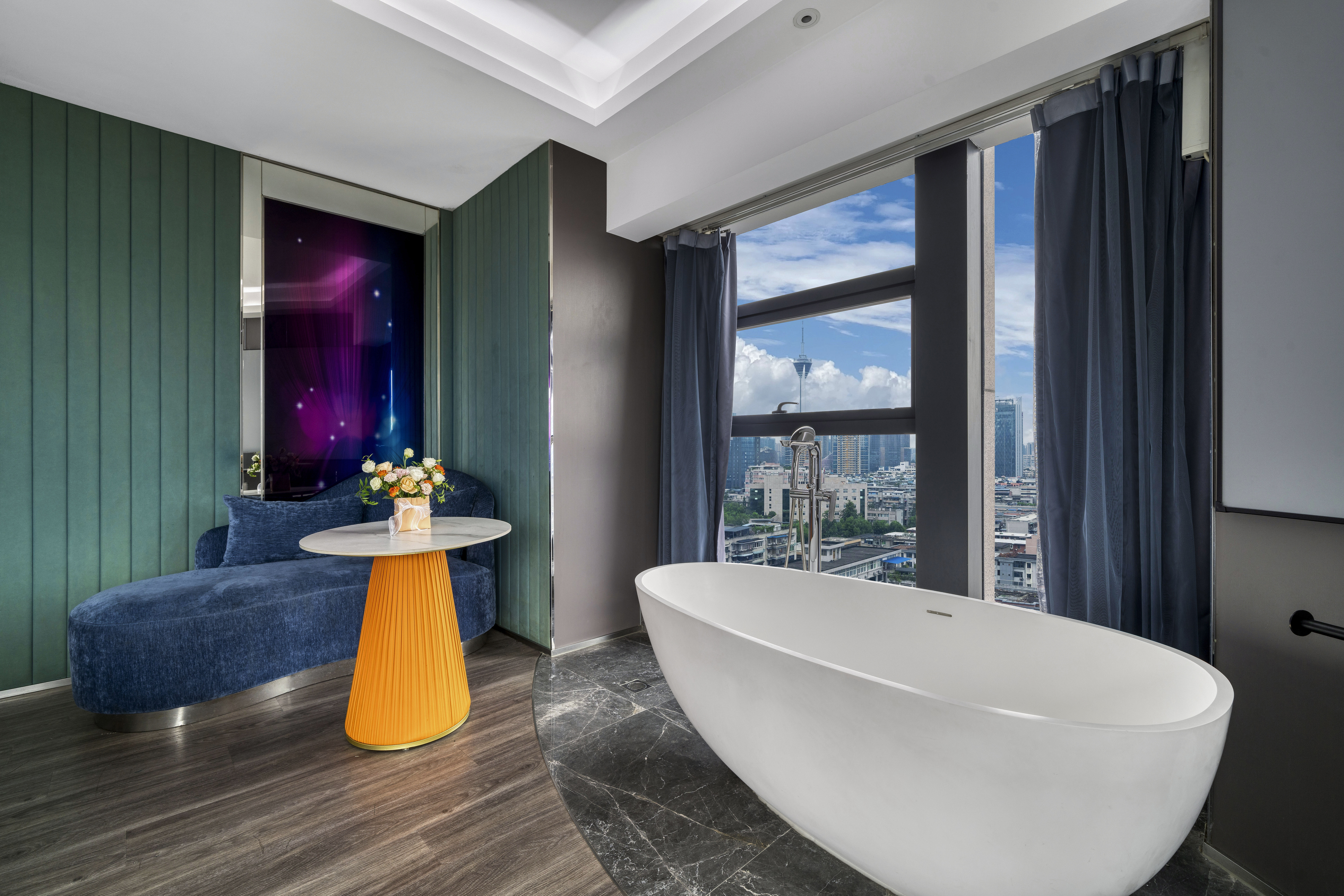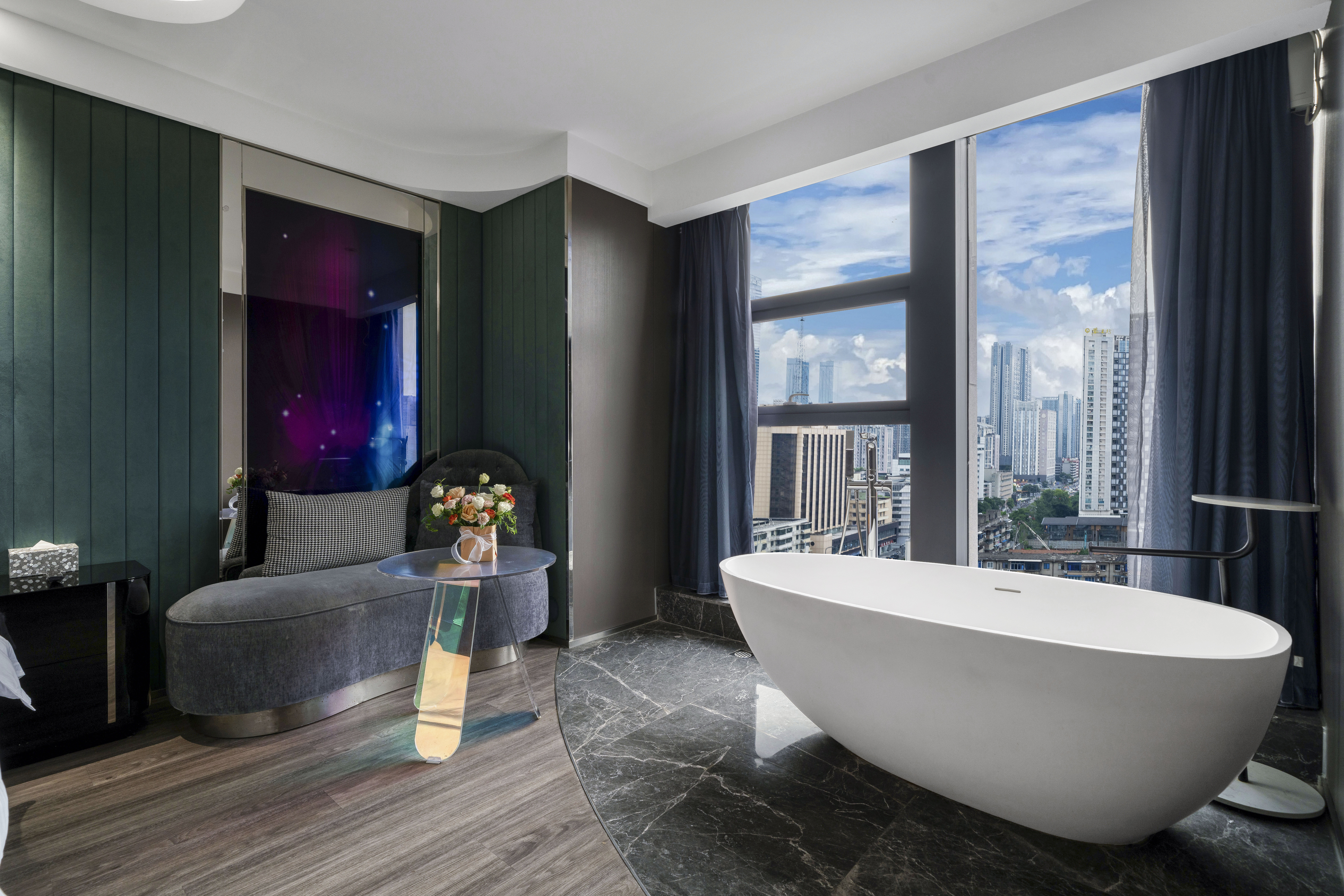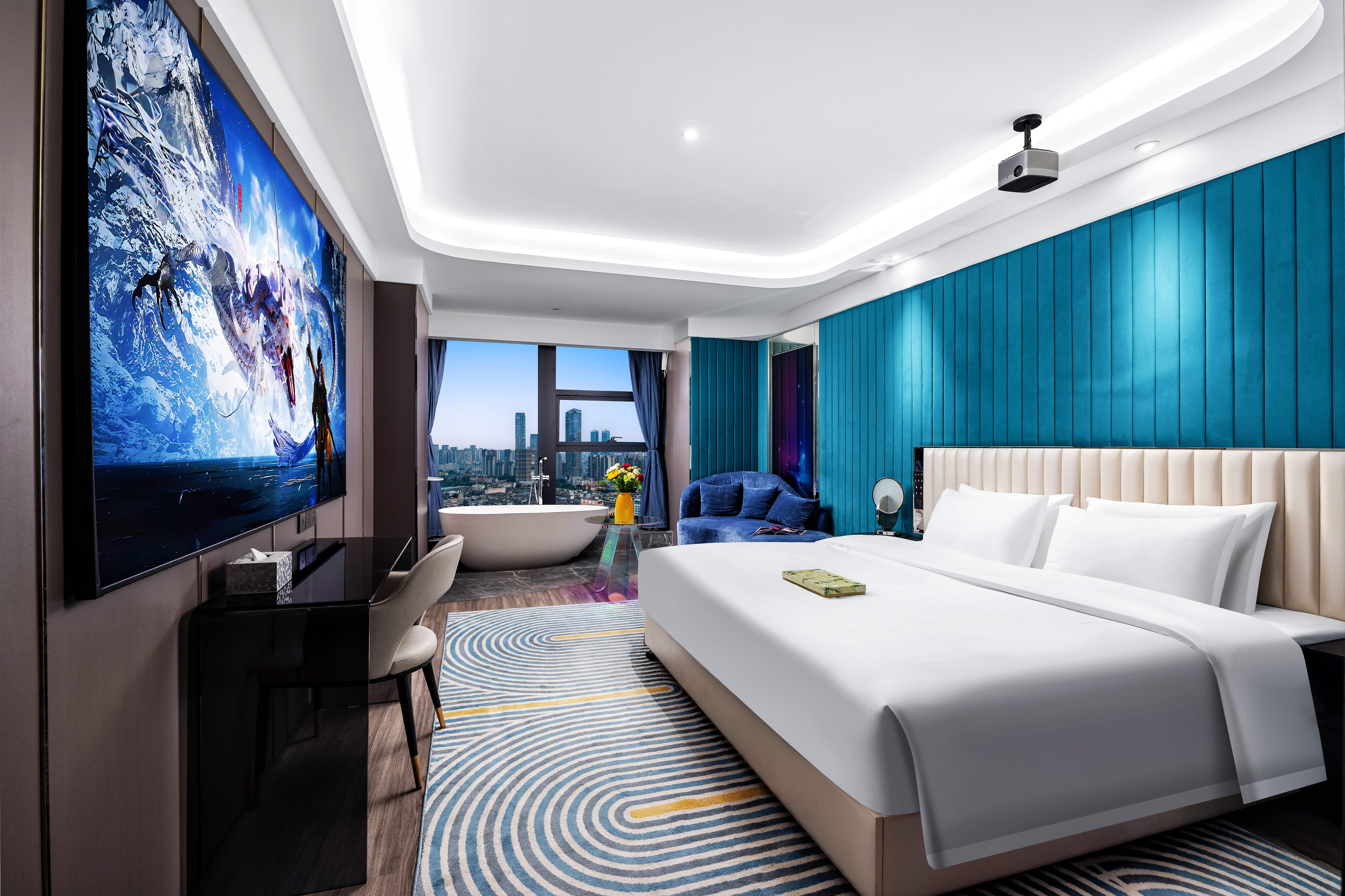 天际·全景浴缸套房(巨幕投影+观景浴缸+小冰箱)